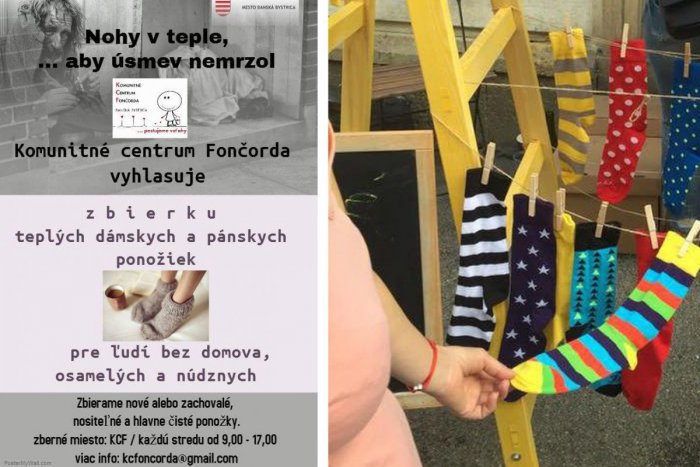V Bystrici prebieha nová zbierka pomoci a ľudskosti. Komunitné centrum Fončorda (KCF) vyhlasuje zbierku teplých dámskych a pánskych ponožiek pre ľudí bez domova, osamelých a núdznych. Pretože je dôležité mať nohy v teple, aby úsmev nezamrzol.