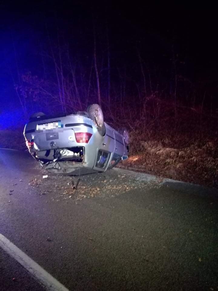 Galéria k článku Pri Bystrici došlo k hrozivej nehode: Vodič skončil s autom na streche, FOTO