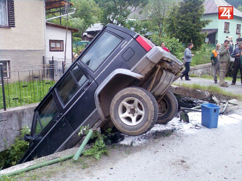 Galéria k článku Mladík skončil s autom v potoku!