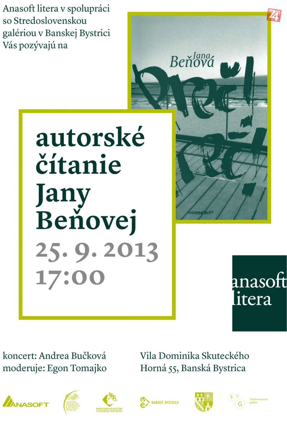 Galéria k článku Autorské čítanie finalistky Anasoft litery 2013: Vo vile Skuteckého sa predstaví Jana Beňová