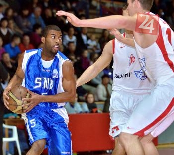 Rozohrávač Spišskej Novej Vsi Marquis Gilstrap pri lopte
