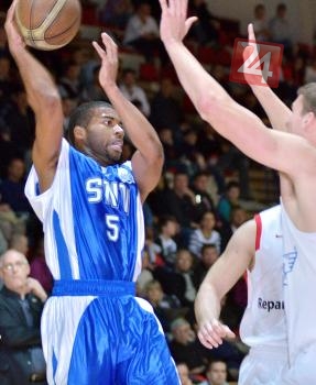 Rozohrávač Spišskej Novej Vsi Marquis Gilstrap pri lopte