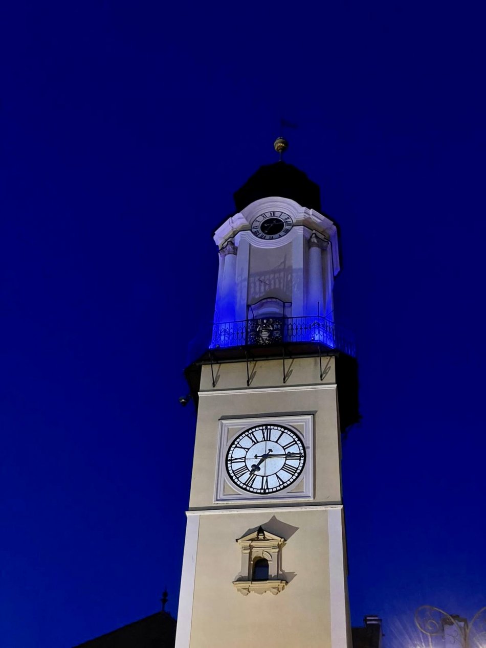 Galéria k článku Všimli ste si bystrické DOMINANTY vysvietené na modro? Mesto vysvetlilo DÔVOD