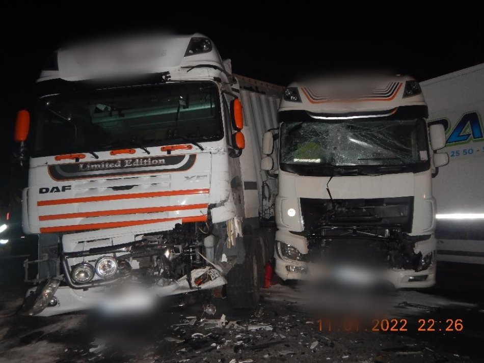 Galéria k článku Vodiči mali veľké šťastie: Hrozivo vyzerajúca čelná zrážka kamiónov pri Kremnici, FOTO