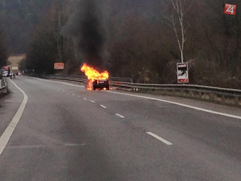 Galéria FOTO: Auto v plameňoch na ceste pri Bystrici