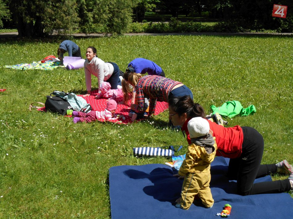 Galéria k článku FOTO: Roztomilé cvičenie v bystrickom parku. Mamičky sa do formy dostávajú spolu s bábätkami