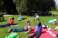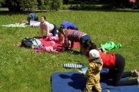 FOTO: Bystričanky nelenia. Fit Maminy cvičia v mestskom parku