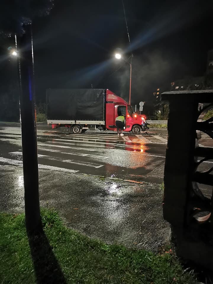 Galéria k článku Nehoda nákladiaka s autom v Kremnici: Na mieste ratovali zakliesnenú osobu, FOTO