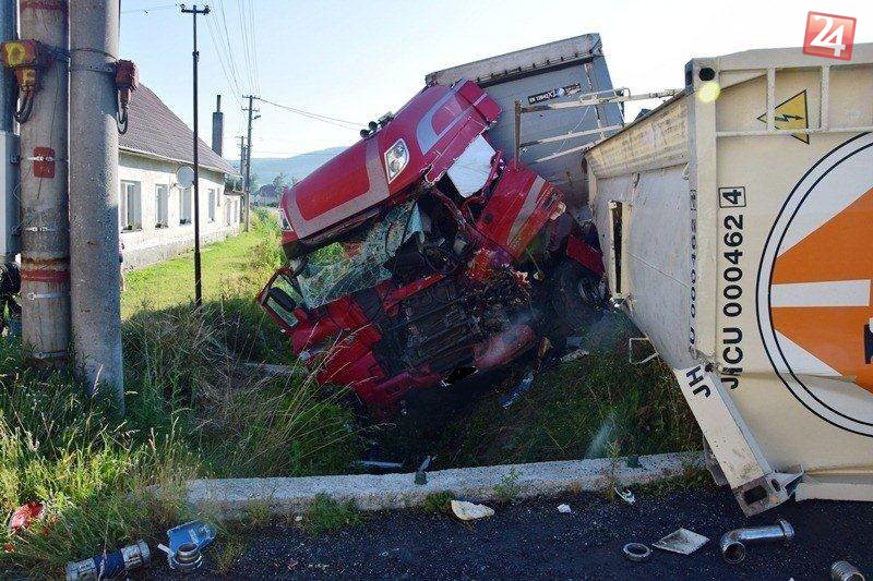 Galéria k článku FOTO: Čelná zrážka kamiónov pri Zvolene: Tragédia si vyžiadala život vodiča (†37)