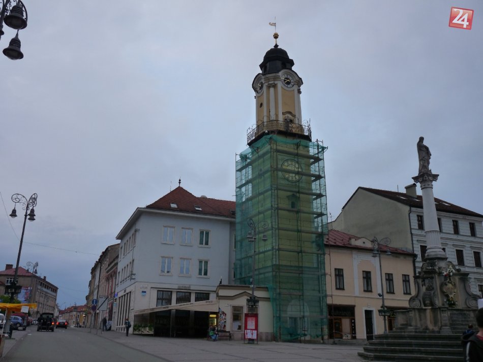 Galéria k článku Hodinovú vežu na námestí zahaľuje lešenie a sieť: Po necelom roku sa dočkala rekonštrukcie