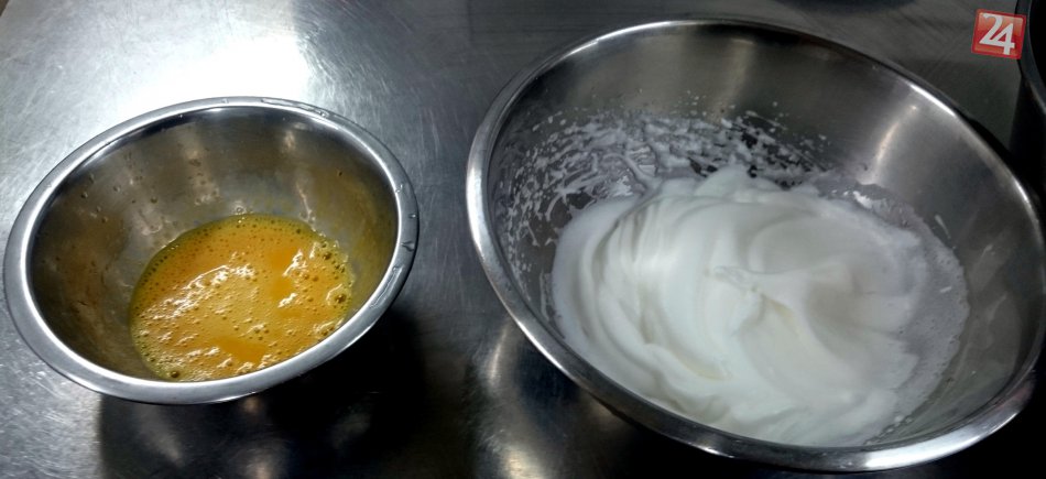 Postupne pridáme vyšľahané bielka, vyšľahané žĺtka, soľ a korenie podľa chuti. Všetko zľahka premiešame.