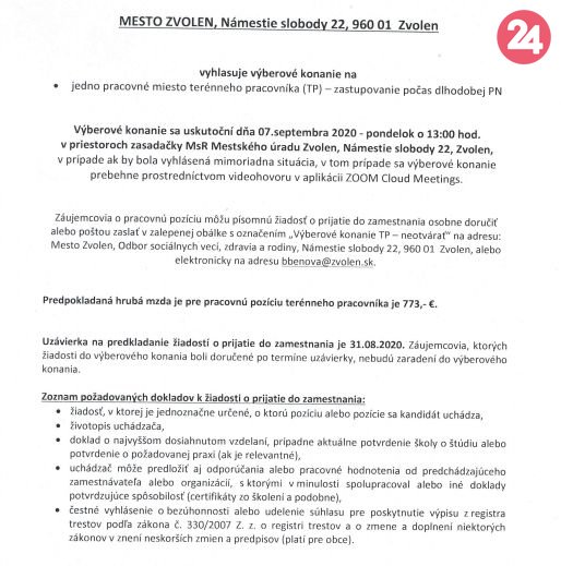 Galéria k článku Zvolen hľadá náhradu počas dlhodobej PN: Voľné je jedno pracovné miesto