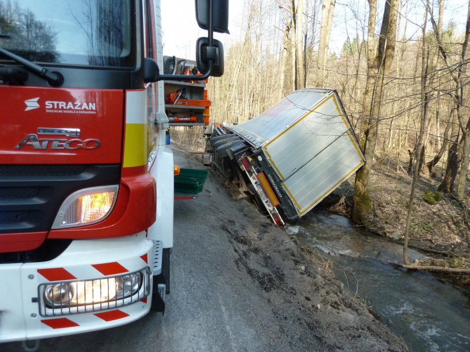 Galéria k článku VIDEO: Kamión pod Dielikom skončil v potoku
