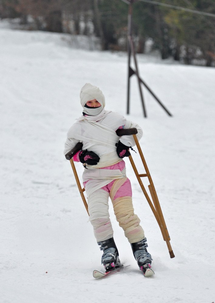 Galéria k článku V Muráni vďaka počasiu spustili vlek: Lyžiari sa po svahu premávali v maskách