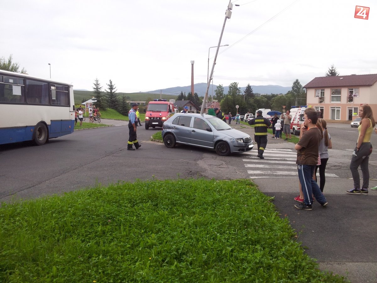 Galéria k článku FOTO: Kuriózna zrážka pútala pozornosť. Auto stlačilo medzi stĺp a autobus!
