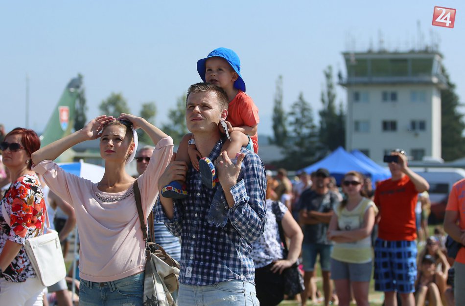 Na snímke návštevníci sledujú vzdušné vystúpenia počas druhého dňa Medzinárodných leteckých dní SIAF 2015 na leteckej základni Sliač 30. augusta 2015.