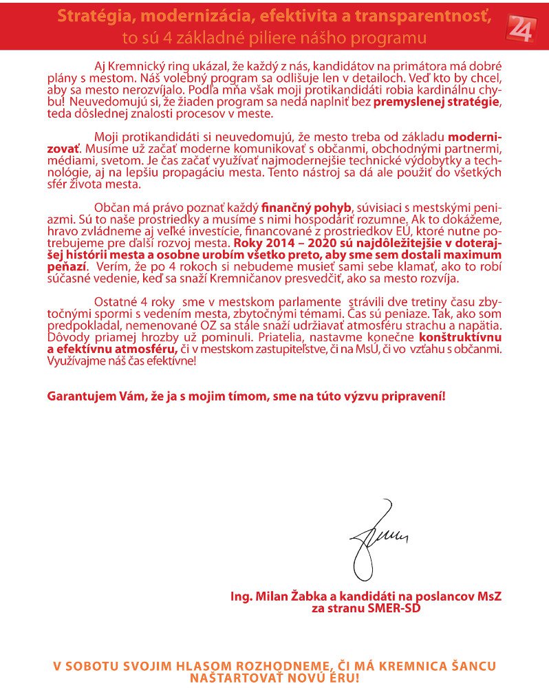 Galéria k článku Milan Žabka: Kremničania, príďte v sobotu k voľbám!