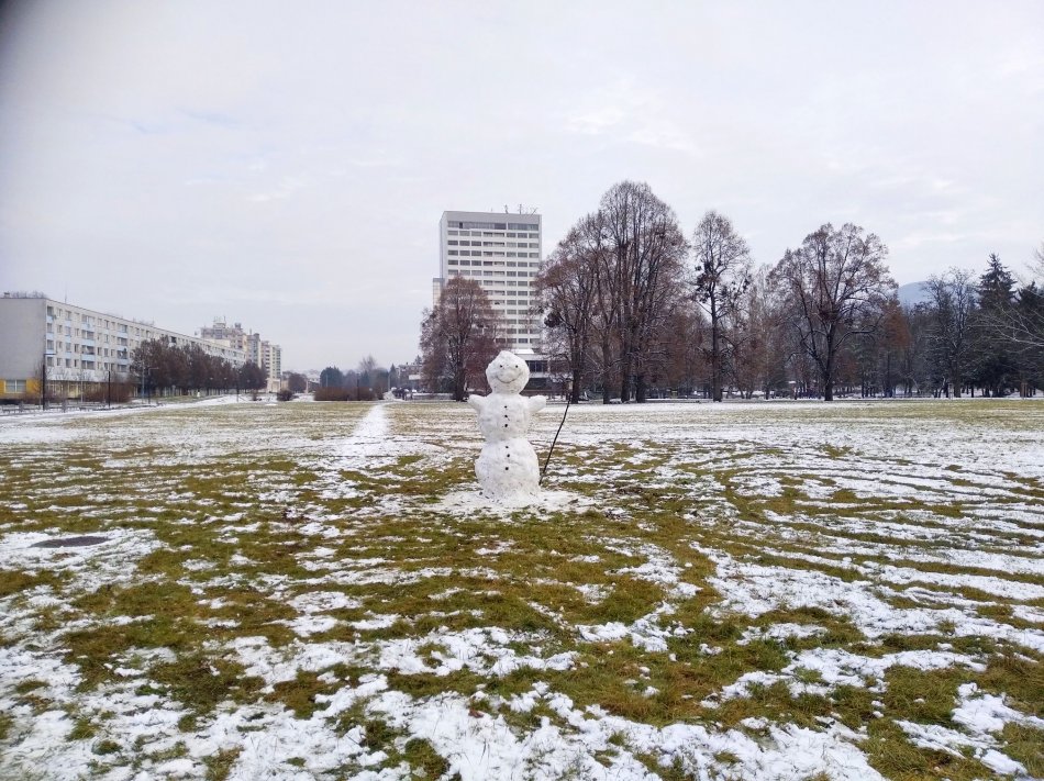 Galéria k článku Aj trocha snehu potešila Bystričanov: V parku vyrástol obrí snehuliak, FOTO