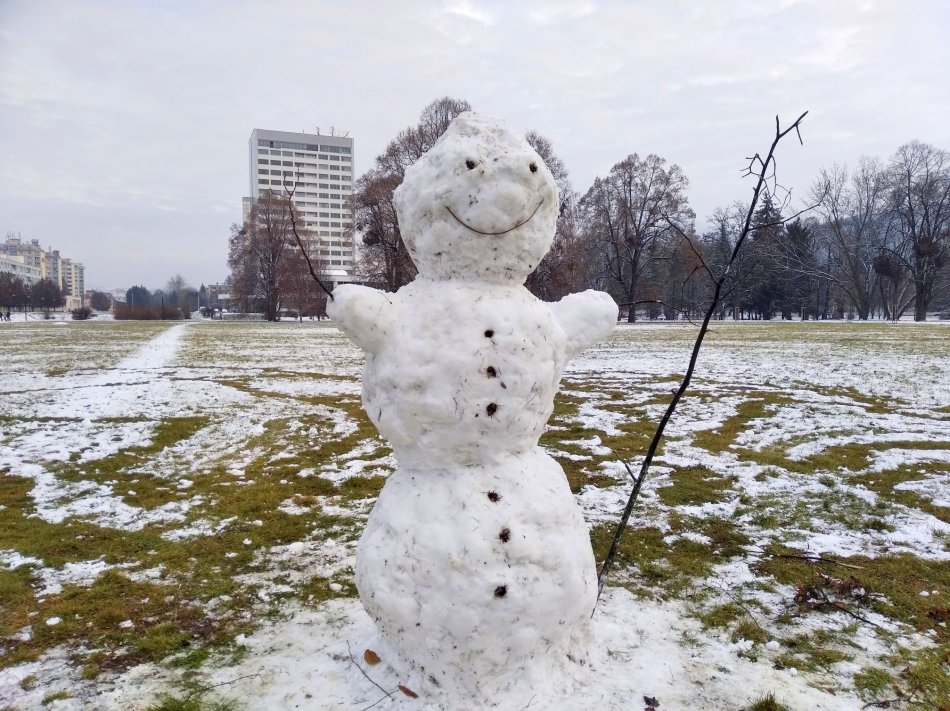 Galéria k článku Aj trocha snehu potešila Bystričanov: V parku vyrástol obrí snehuliak, FOTO