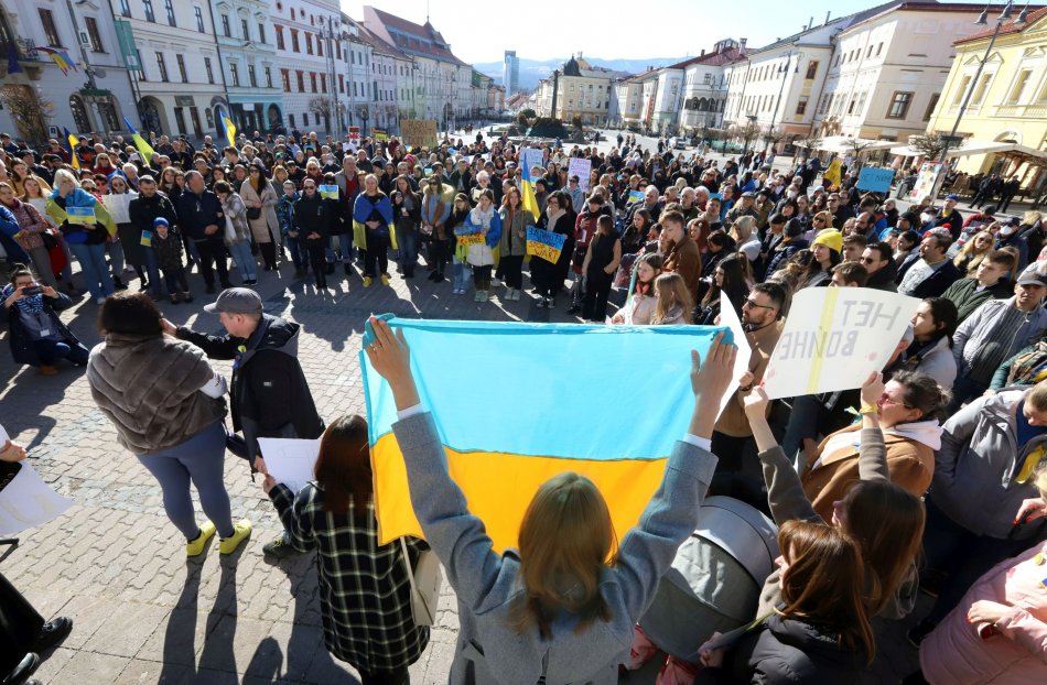 Galéria OBRAZOM: Proti vojne na Ukrajine protestovali na bystrickom námestí stovky ľudí