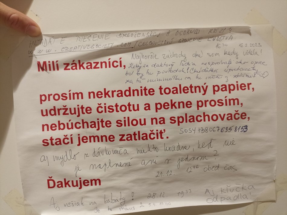 Galéria k článku KURIOZITA z nákupného centra: Oznam na dámskych WC zaplnili komentáre návštevníčok