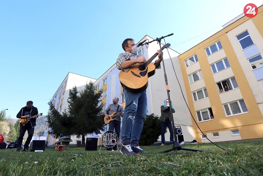 Janko Kulich a Kolegium koncertovali pod oknami. Na tomto zábere konkrétne v obci Vyhne.