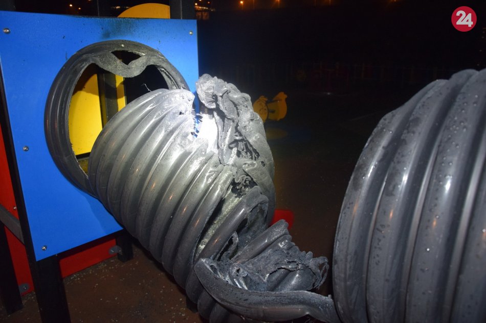 Galéria k článku Hnus deťom: Ktosi úmyselne podpálil detské ihrisko v Brezne, FOTO