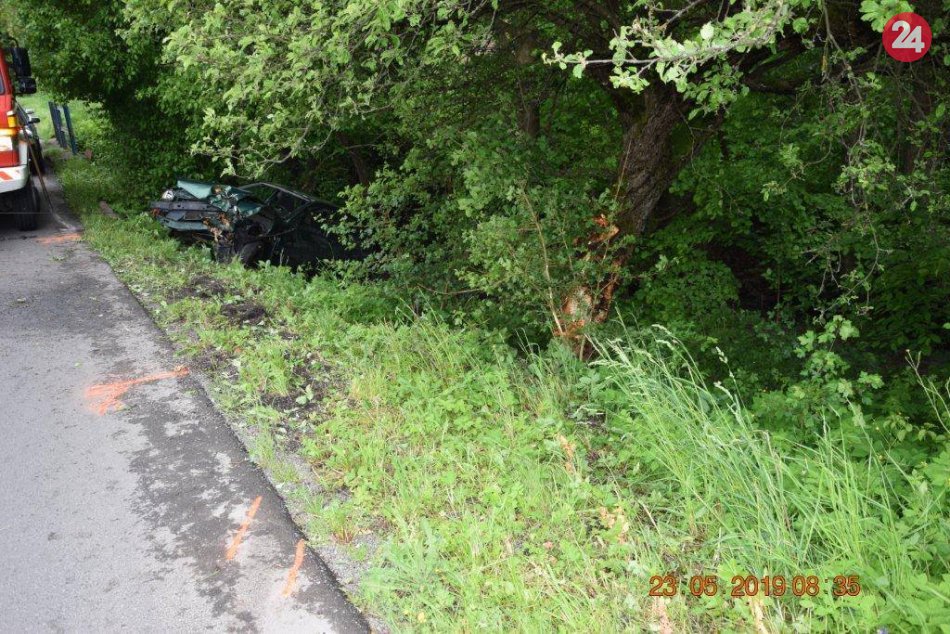 Galéria k článku Pri Žarnovici vpálilo auto do stromu: Vodička (56) je ťažko zranená, FOTO