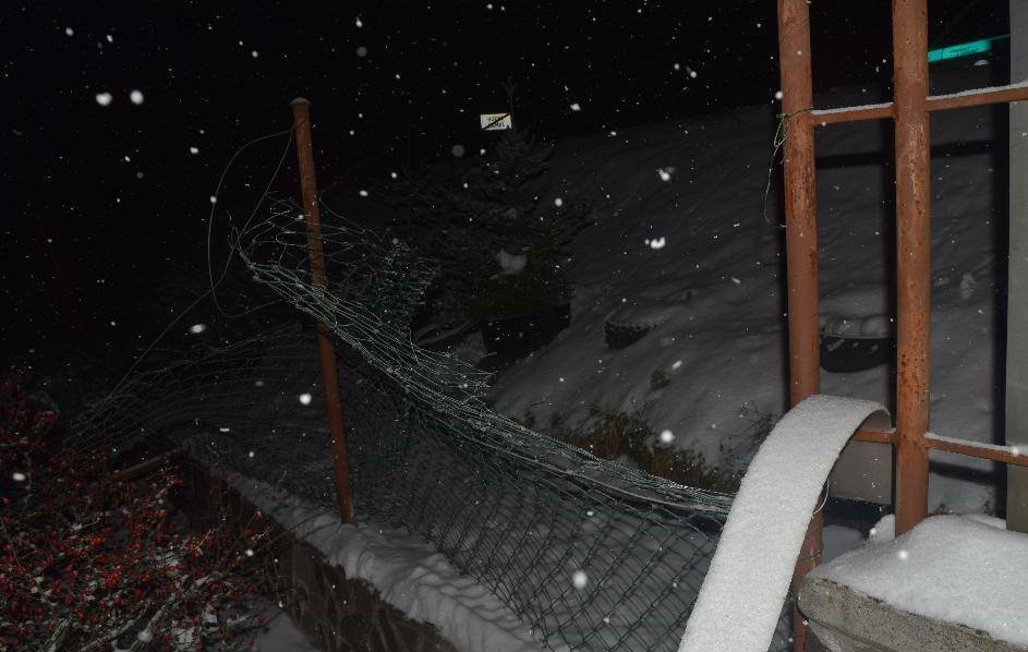 Galéria k článku Vodič pri Žarnovici podcenil sneh: Zrámoval značku, stĺp aj plot, FOTO