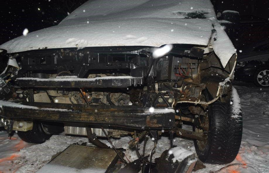Galéria k článku Vodič pri Žarnovici podcenil sneh: Zrámoval značku, stĺp aj plot, FOTO