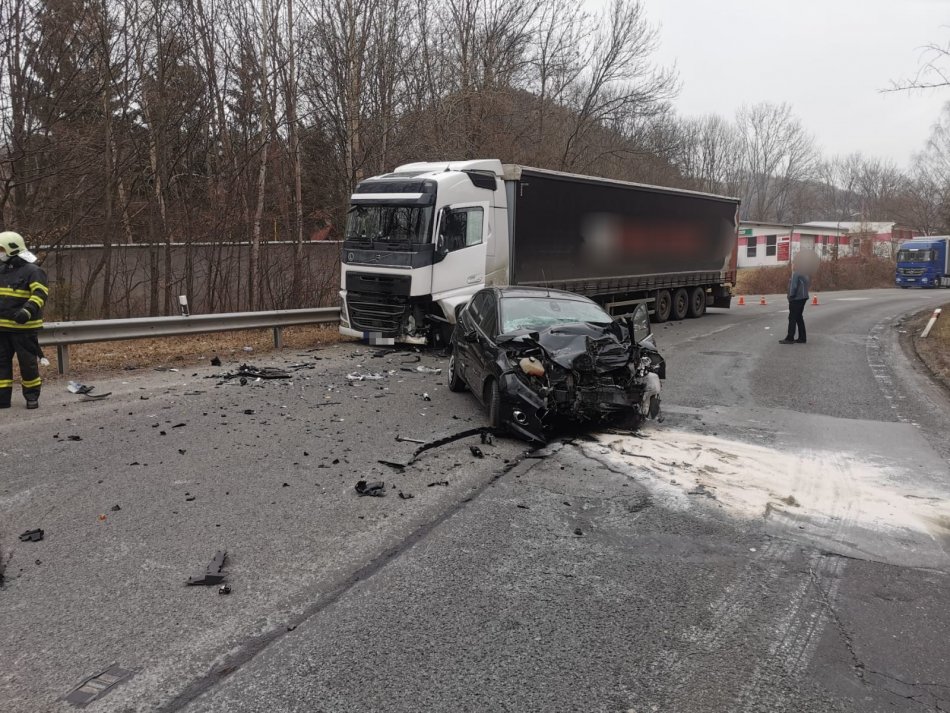 Galéria k článku Vážna nehoda v Kremnici: Zranená vodička po čelnej zrážke s kamiónom, FOTO