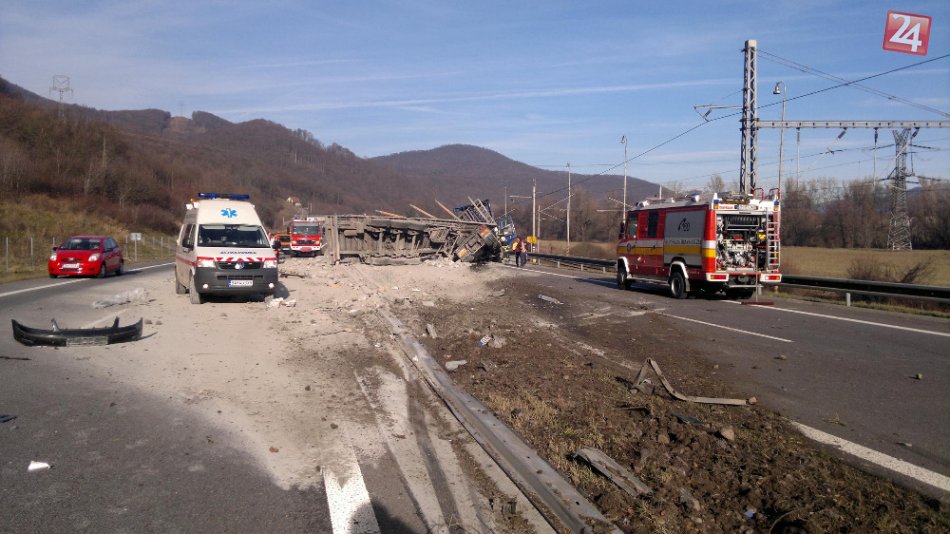Galéria k článku Pravrátenie kamiónu na R1: Pozrite si zábery z miesta vážnej nehody!