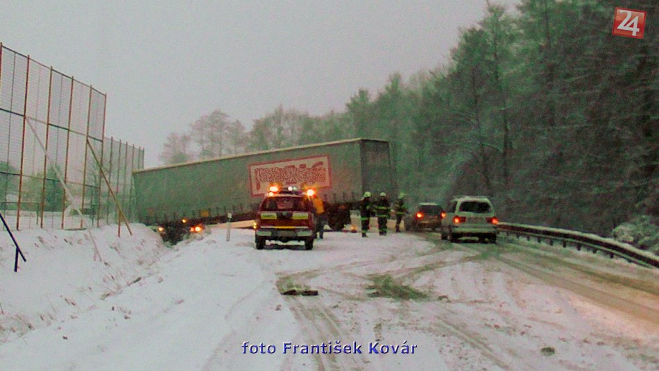 Galéria k článku Pri dedine sa prevrátil kamión, hlavný ťah zablokovaný! FOTO
