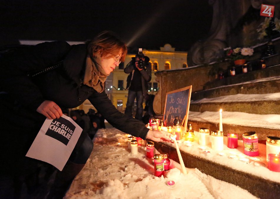 Galéria Približne stovka ľudí zapálila sviečky za obete v Paríži