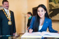 Primátor Gogola prijal veľvyslankyňu dobrej vôle z USA: Michelle Kwanová s ním h