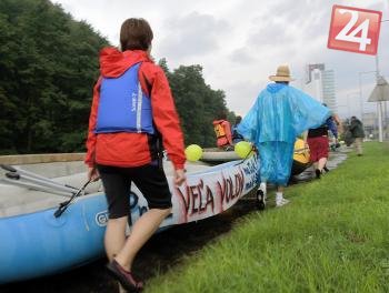 Galéria k článku Nespokojnosť vyjadrili naozaj netradične: Desiatky ľudí protestne splavilo Hron