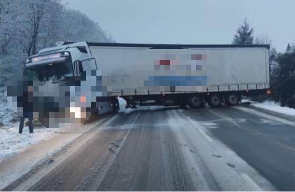 Galéria k článku Cesta medzi Žiarom a Kremnicou je neprejazdná: Skrížil sa tu kamión