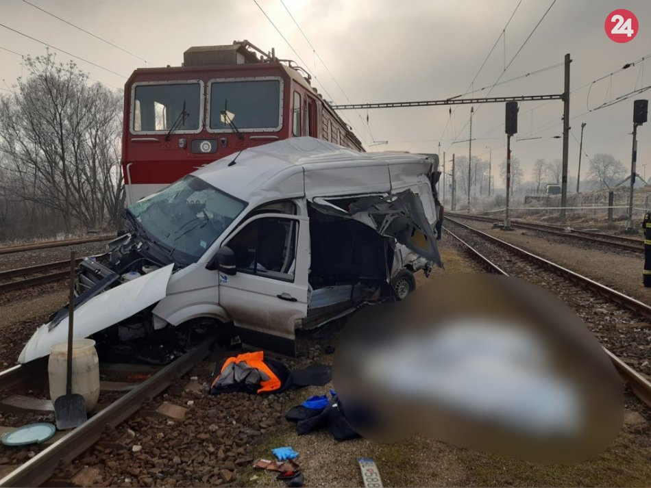 Galéria k článku Zrážka dodávky s vlakom v Žarnovici: Hasiči hlásia dve obete! FOTO z miesta