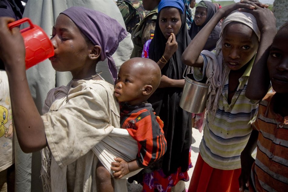 Deti čakajú pri nádrži s pitnou vodou v rade. UNICEF pre obyvateľov tejto komunity zabezpečil nádrž, do ktorej je dovážaná nezávadná voda nákladnými autami. O túto nádrž sa delí celá komunita, keďže v ich blízkosti sa nenachádza žiadny zdroj bezpečne