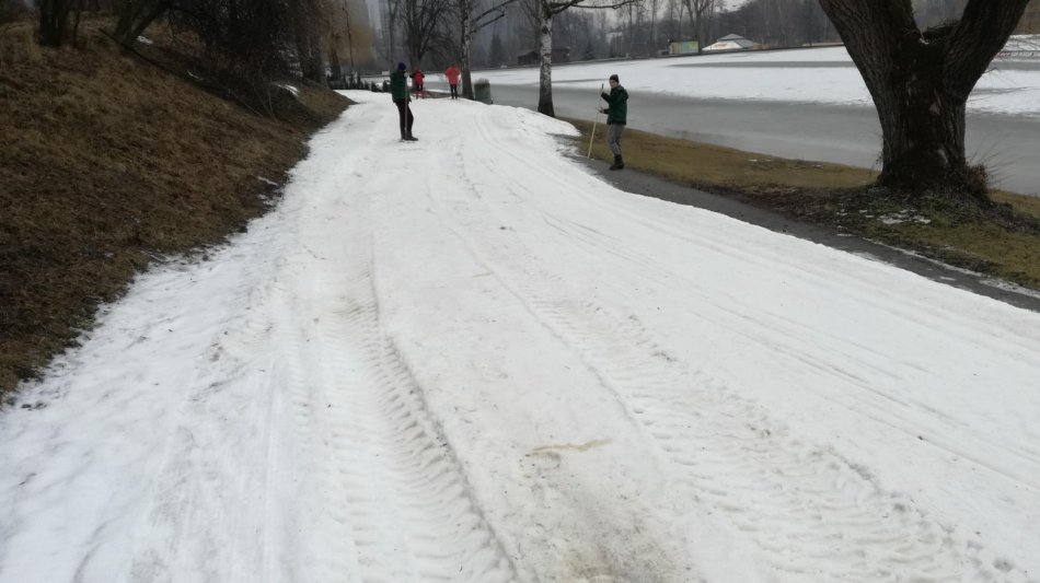 Galéria k článku Na bystrickom kúpalisku sa dejú zázraky: Bežkársky okruh udržujú, ako sa len dá, FOTO