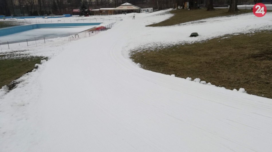 Galéria k článku Chýba vám sneh? Na bystrickom kúpalisku sú ideálne podmienky pre bežkárov, FOTO