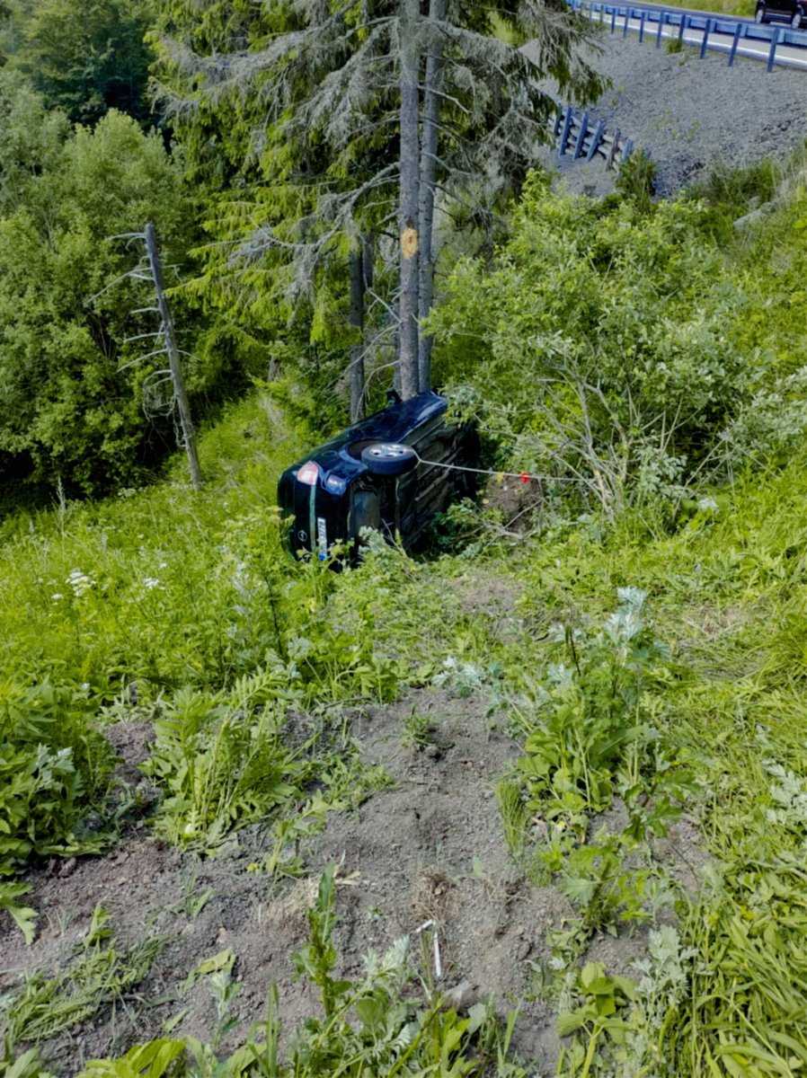 Galéria k článku DESIVÁ nehoda na horskom priechode: Auto zišlo desiatky metrov STRMÝM svahom, FOTO