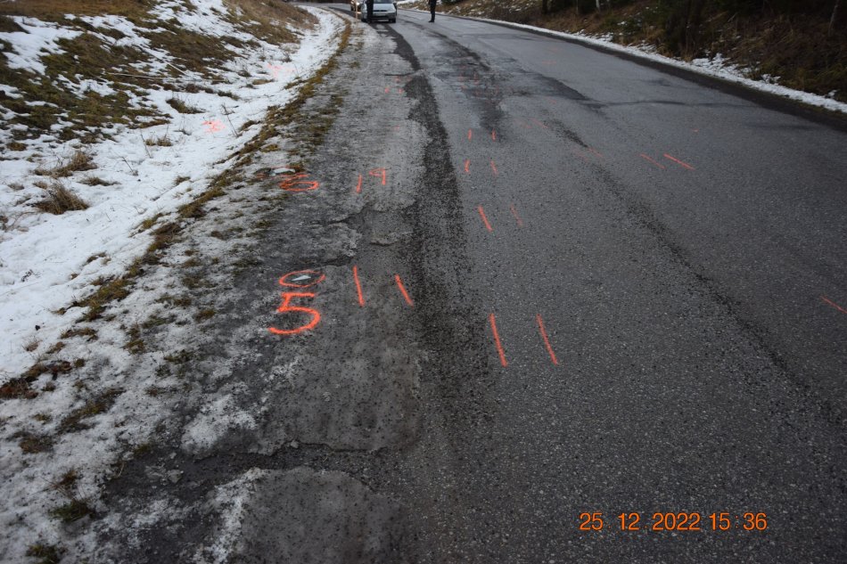 Galéria k článku Auto po šmyku zrazilo chodca: Pri HROZIVEJ nehode utrpel VÁŽNE zranenia, FOTO