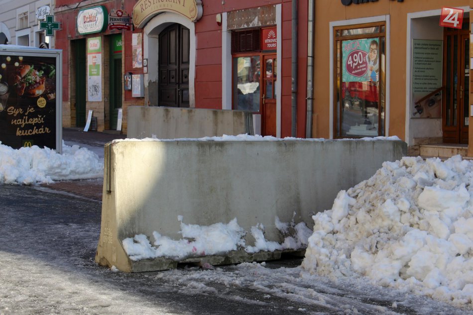 Galéria V OBRAZOCH: Betónové zátarasy v centre Bystrice zdobia vianočné stromčeky