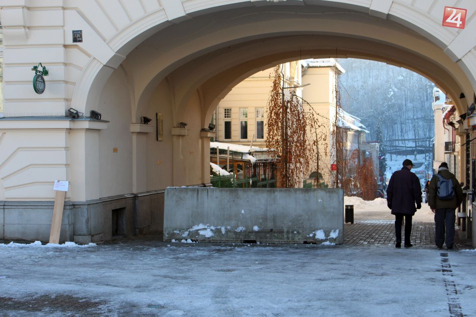 Galéria V OBRAZOCH: Betónové zátarasy v centre Bystrice zdobia vianočné stromčeky