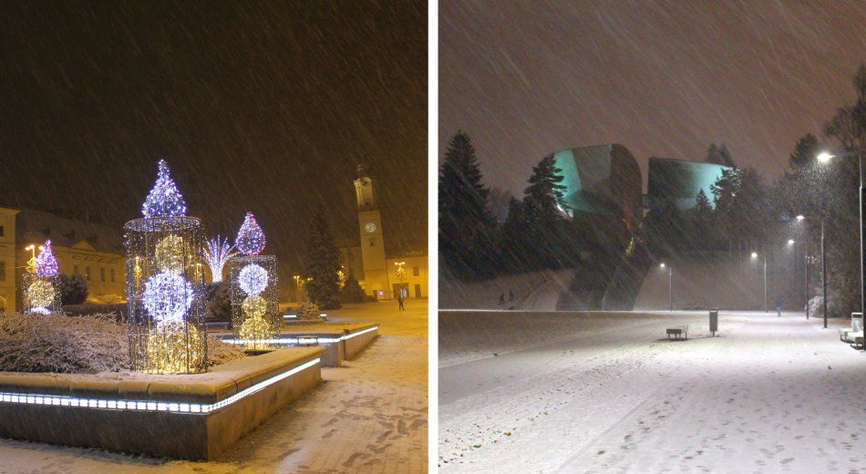 Galéria k článku Zimná idylka v uliciach Bystrice: Mesto zahalila prvá snehová prikrývka, FOTO