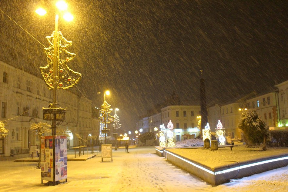Galéria k článku Zimná idylka v uliciach Bystrice: Mesto zahalila prvá snehová prikrývka, FOTO