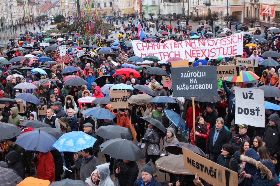 Galéria V OBRAZOCH: Bystričania s dáždnikmi a transparentmi zaplnili námestie