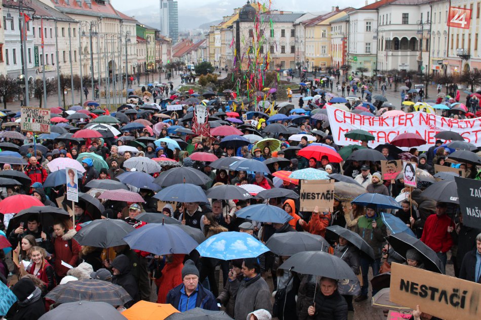 Galéria V OBRAZOCH: Bystričania s dáždnikmi a transparentmi zaplnili námestie