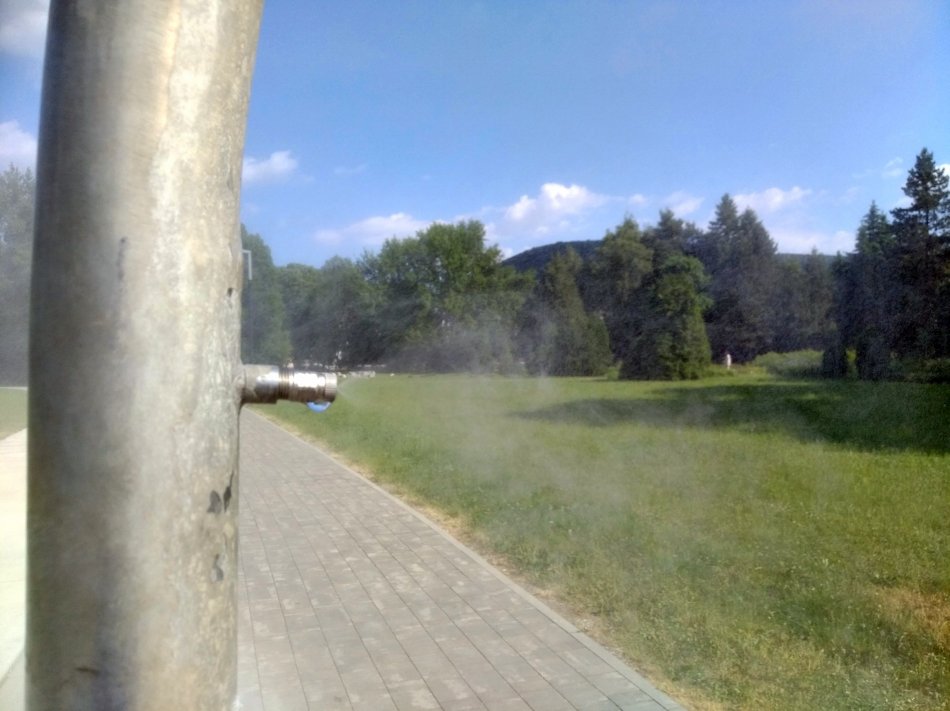 Galéria k článku Obľúbené osvieženie v horúčavách je späť: V Bystrici spustili vodné hmly, FOTO